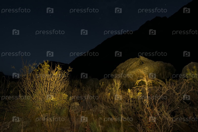 Россия. Юг Западной Сибири. Осенняя ночь в долине реки Чулышман в горах Алтая
