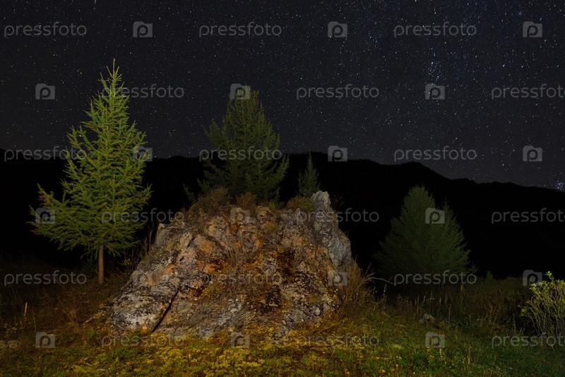 Россия. Юг Западной Сибири. Осенняя ночь в долине реки Чулышман в горах Алтая