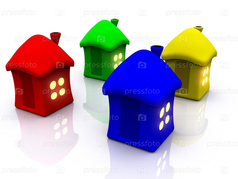 Разноцветные трехмерные дома на белом фоне