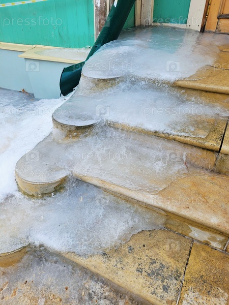 Лед на ступеньках у входа в здание
