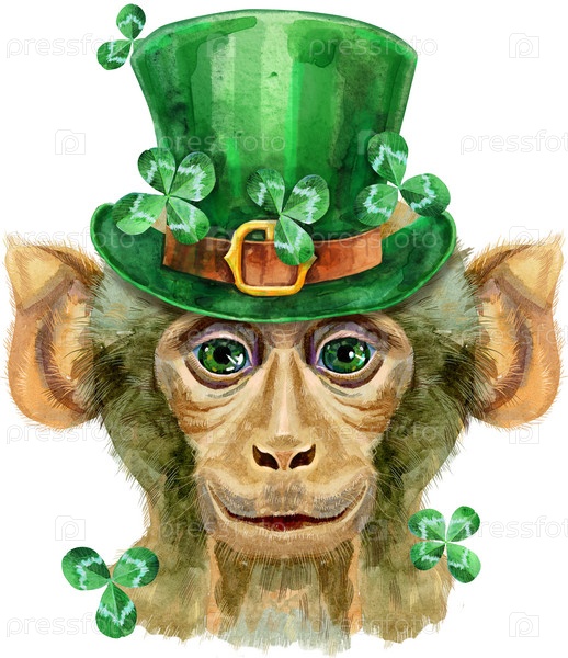 Голова обезьяны изолирована на белом фоне. Обезьянка акварельная иллюстрация с брызгами