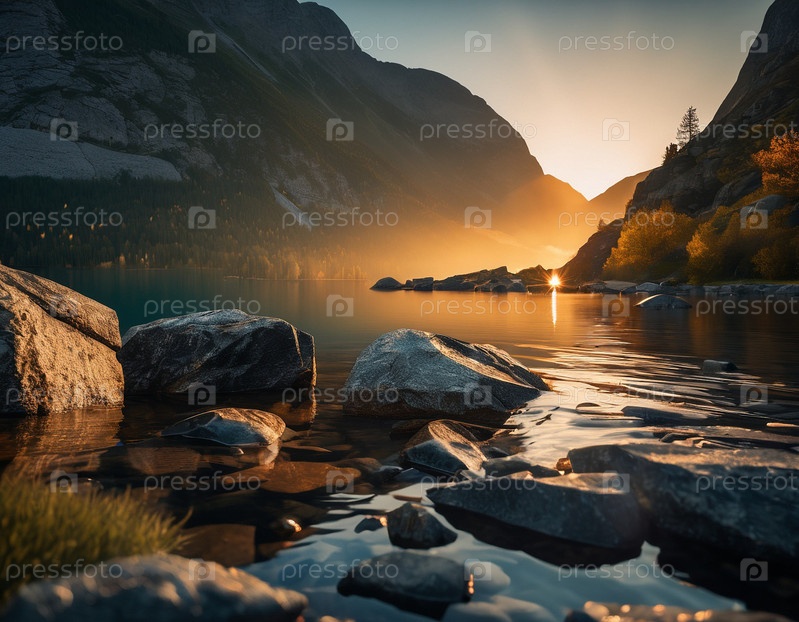 Красивый кинематографический горный пейзаж с черным мрамором и гранитом