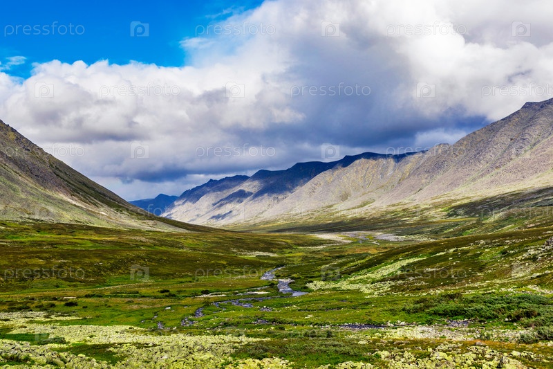 Ручей в северной горной долине в летний день