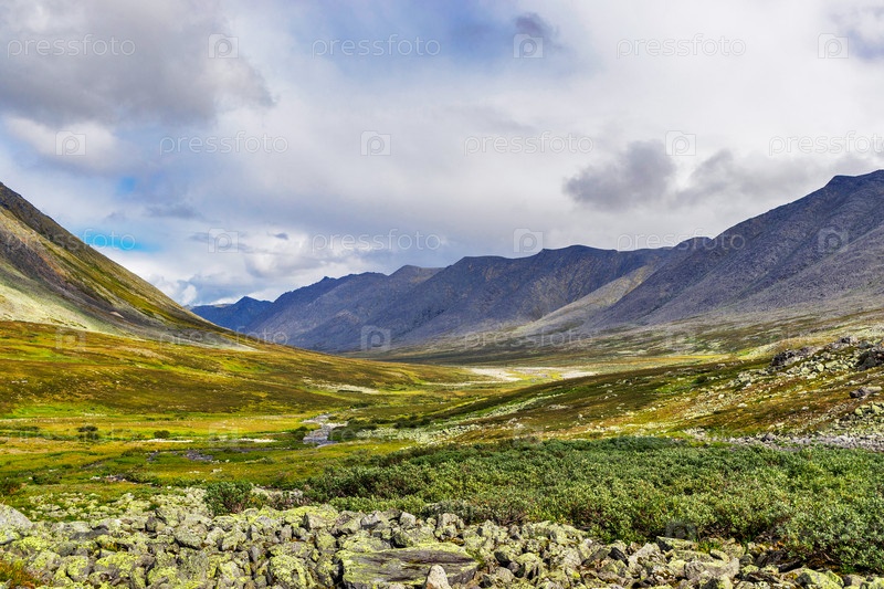 Ручей в северной горной долине в летний день