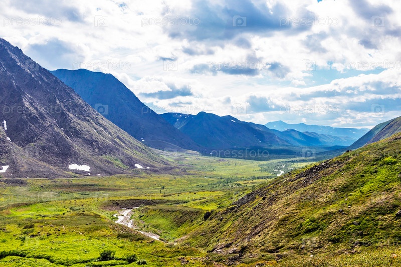 Ручей в северной горной долине в летний день