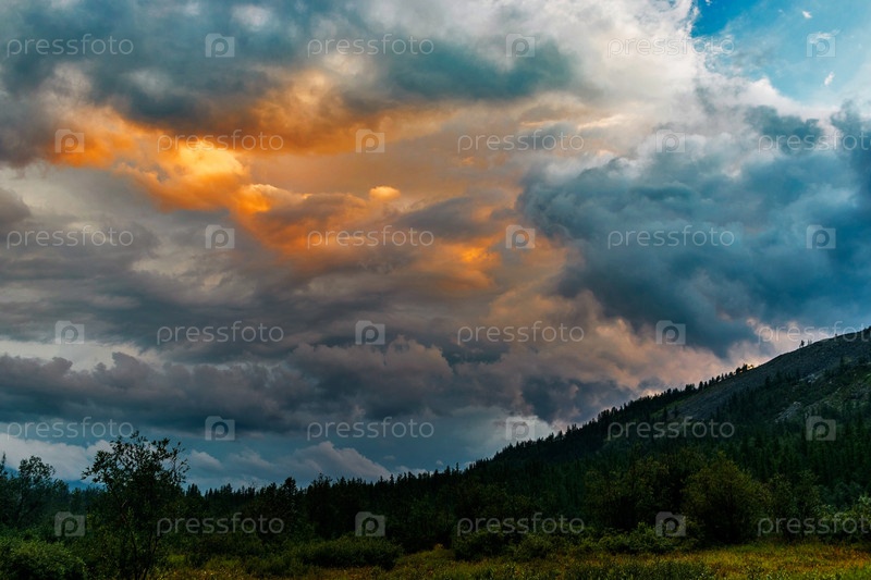 Облака на закате над горами летним вечером