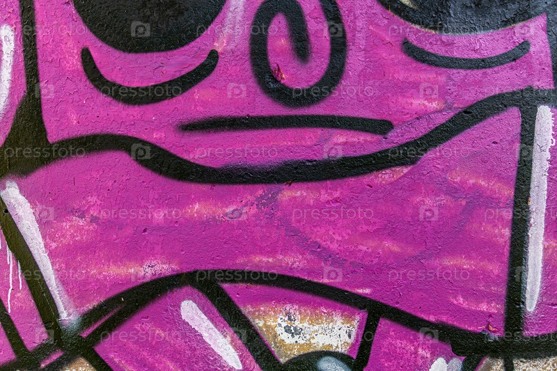 Фиолетовые граффити на потрепанной стене