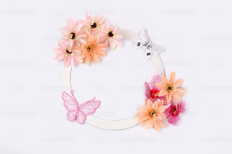 Абстрактная цветочная композиция, красивые орхидеи и лотосы на светлом фоне с местом для текста, привет весенняя концепция, шаблон для дизайна, натюрморт с цветами,