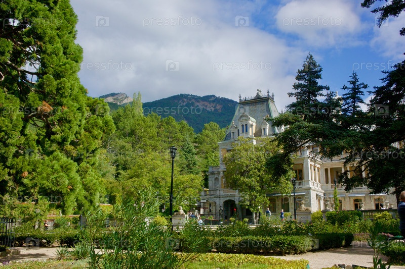 Туристы осматривают бывший королевский Масандровский дворец и прилегающий парк