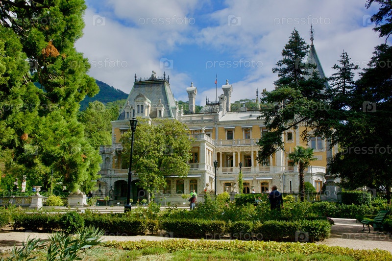 Туристы осматривают бывший королевский Масандровский дворец и прилегающий парк