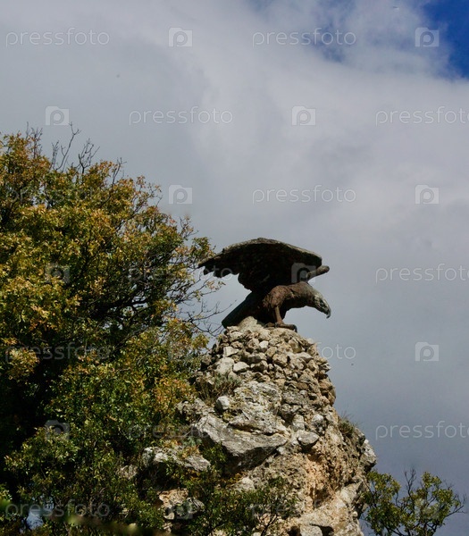Скульптура орла с расправленными крыльями на каменном гребне