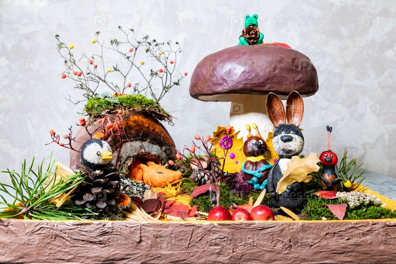 Животные и гриб сделаны из пластилина
