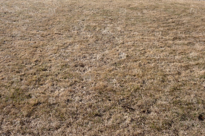 Газон с сухой травой. трава после зимы. скарификация и аэрация