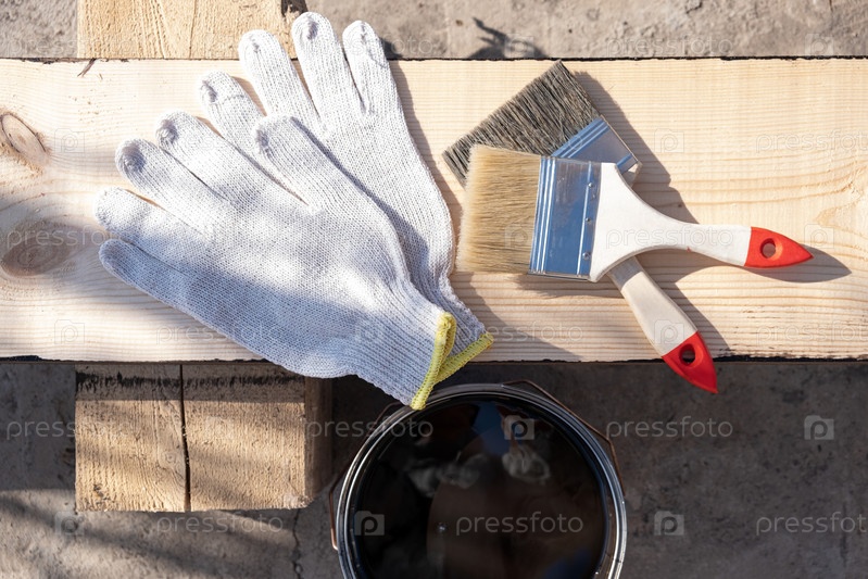 Покраска деревянной доски на открытом воздухе. Покрыты защитным маслом от гниения и влаги