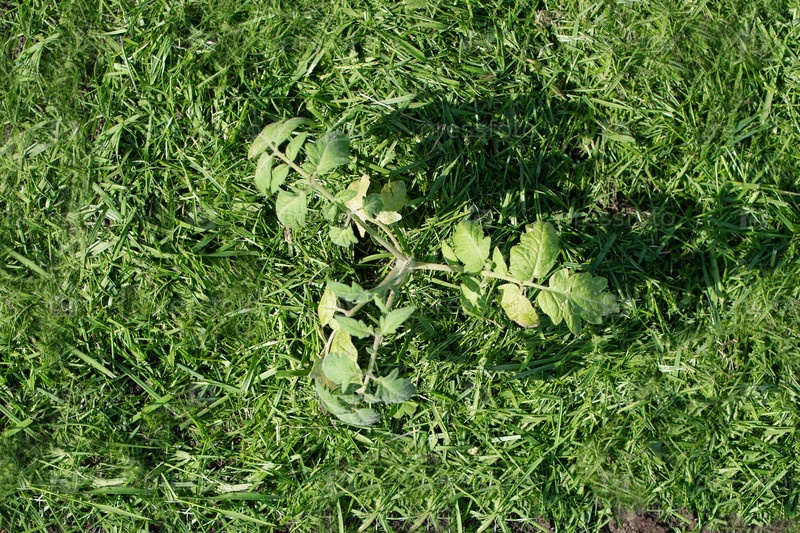 Мульчирование верхнего слоя почвы на овощной грядке скошенной травой с газона. производство биогумусных органических удобрений. Эрозия земли