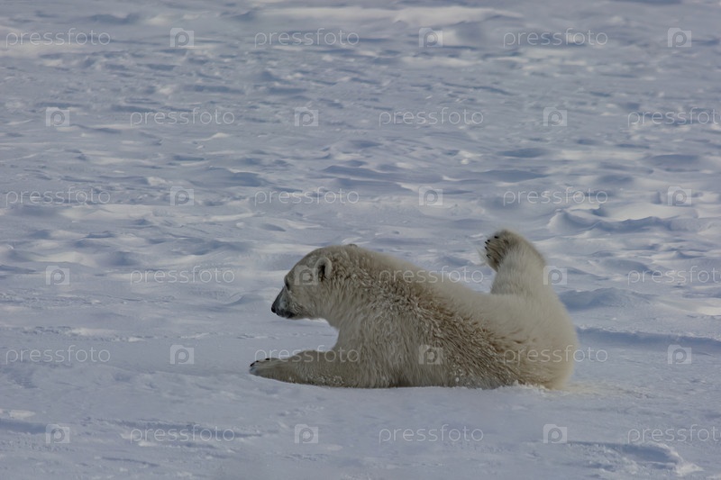 Серия картинок. Пробуждение белого медведя среди арктических льдов. Движения тела и характерные позы медведя, который не хочет просыпаться и идти за едой. Зимний день в Арктике