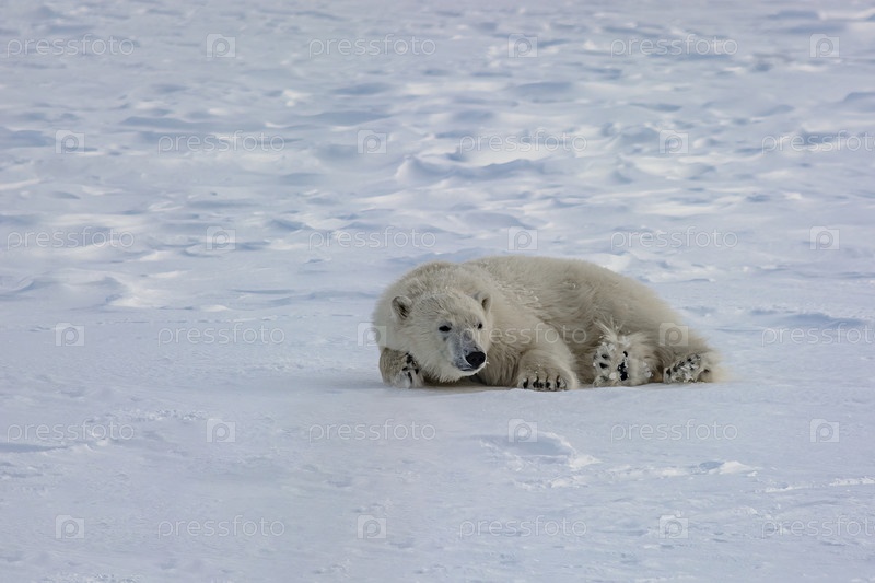 Серия картинок. Пробуждение белого медведя среди арктических льдов. Движения тела и характерные позы медведя, который не хочет просыпаться и идти за едой. Зимний день в Арктике