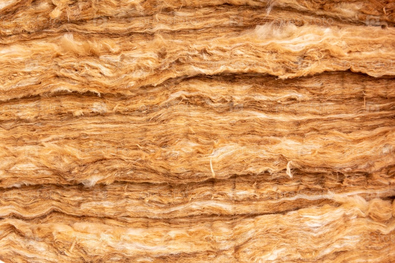 Крупный план наполнителя из минеральной ваты, используемого в качестве изоляции в стене. Желтая минеральная вата с видимой текстурой