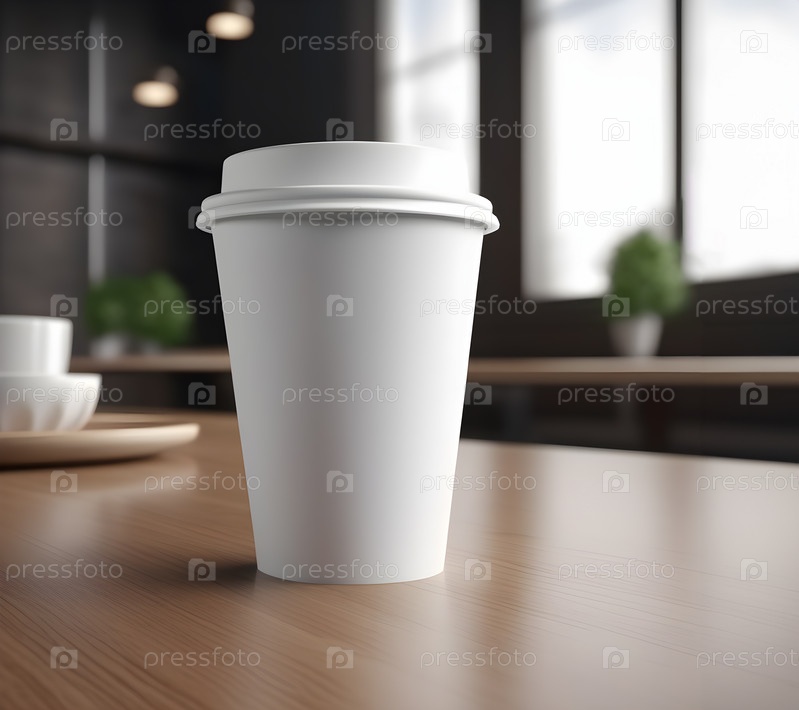 Бумажный стаканчик кофе на вынос на столе. Дизайн-макет