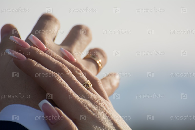Руки с обручальными кольцами молодых людей