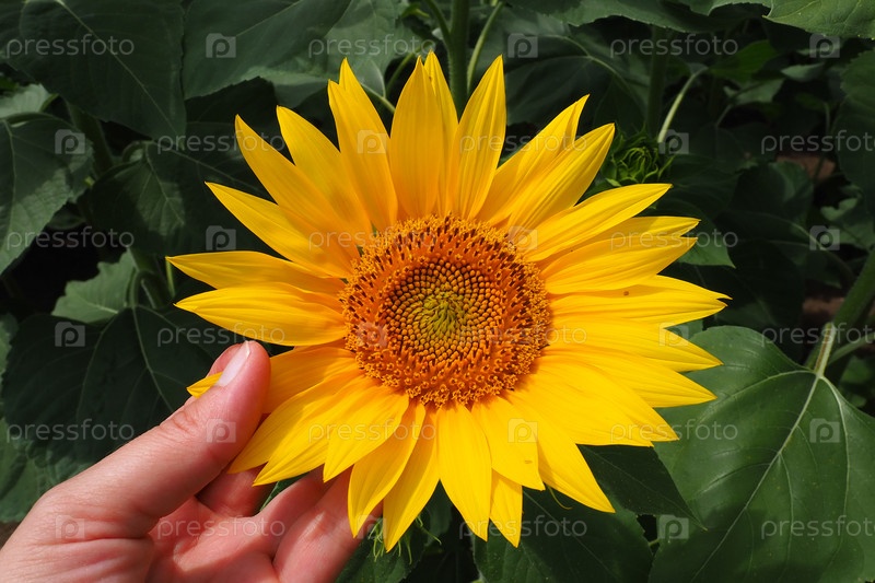 Поле сельскохозяйственных подсолнечников. Подсолнечник Helianthus род растений семейства Астровые. Однолетний и клубневый подсолнечник. Цветящий бутон с желтыми листьями. Сербия, Сремска Митровица