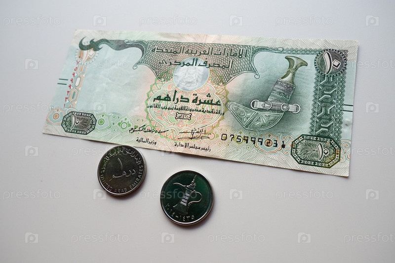 Арабский дирхам Объединенных Арабских Эмиратов. ISO код AED является официальной валютой ОАЭ. Дирхам делится на 100 филсов. Дирхам был официально связан со специальными правами заимствования МВФ