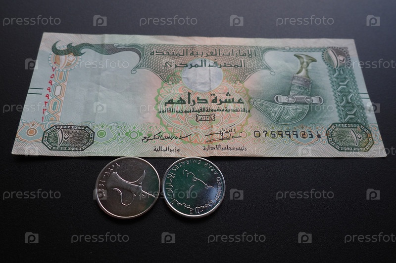 Арабский дирхам Объединенных Арабских Эмиратов. ISO код AED является официальной валютой ОАЭ. Дирхам делится на 100 филсов. Дирхам был официально связан со специальными правами заимствования МВФ