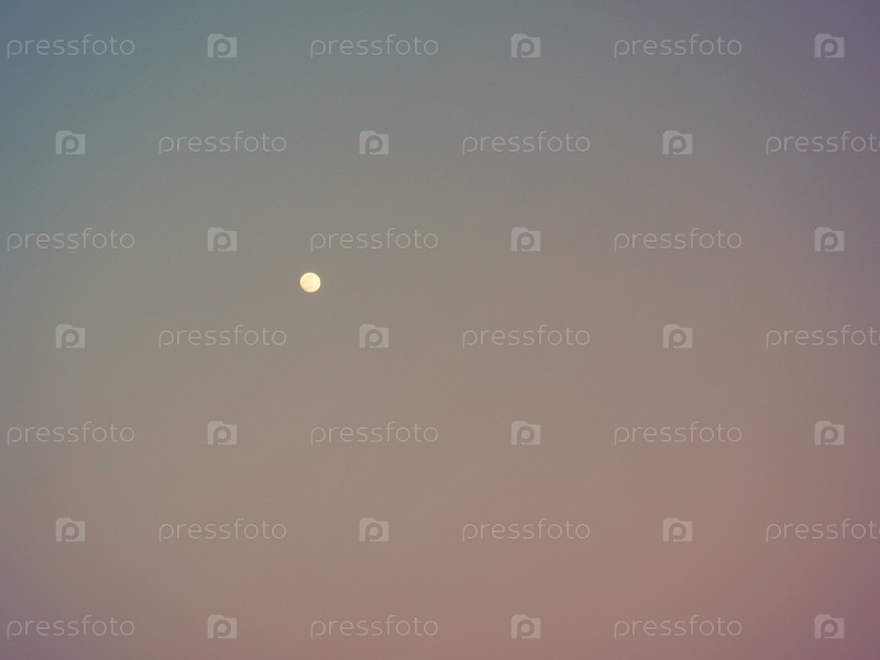 Луна похожа на белую точку на вечернем розово-голубом небе. Фон неба