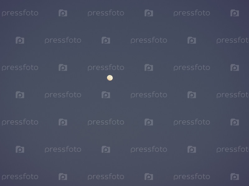Луна в ночном голубом небе. Белая точка на небе. Темное виньетирование по краям изображения