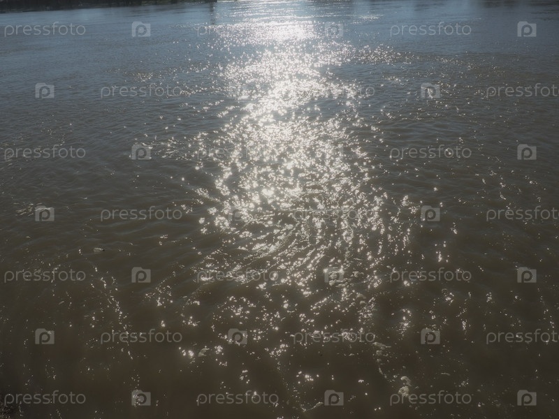 Лучи солнца на поверхности воды. Солнечный путь. Река Сава, Сербия, Сремска-Митровица