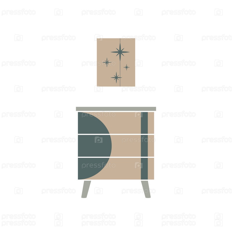 Мебельная иконка в плоском стиле с тумбочкой и постером