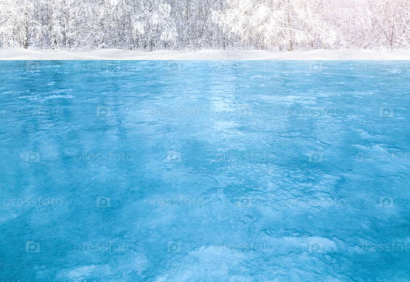 Зимний морозный пейзаж на берегу замерзшего озера или моря