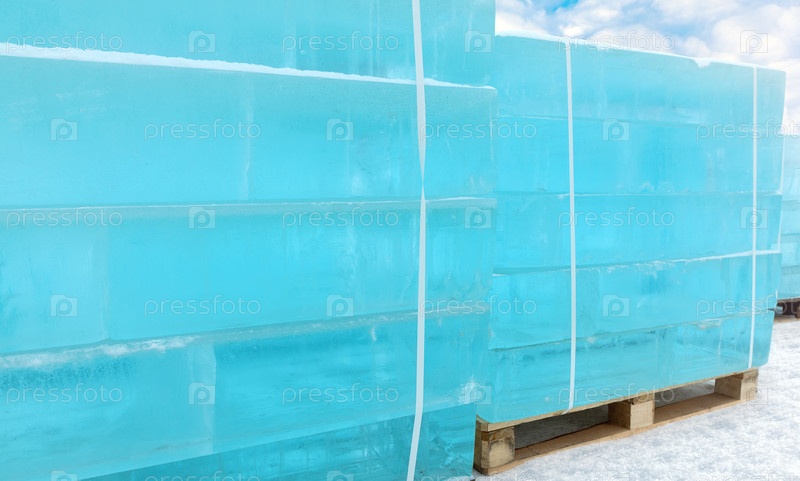 Лед нарезают в форме кирпичей и укладывают на поддоны