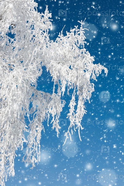 Белые березы покрыты инеем и снегом