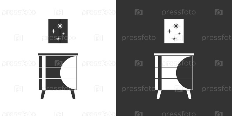 Мебельная иконка с тумбочкой и постером. Черная и белая