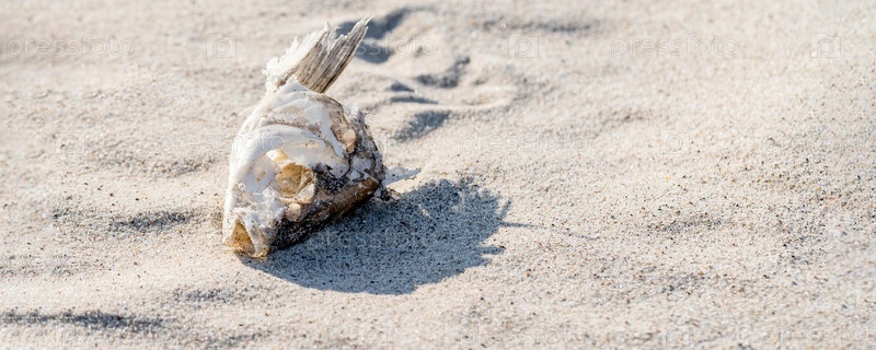 Скелет сушеной рыбы лежит на песке