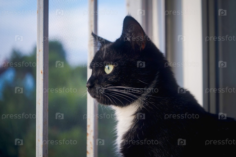 Молодой котенок смотрит в окно