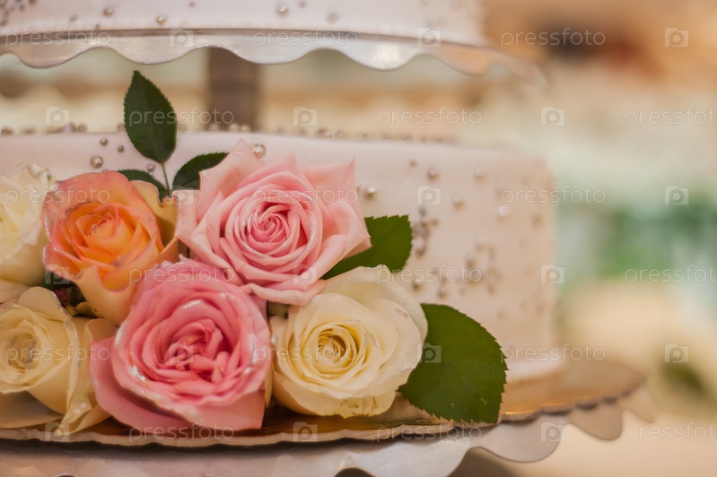Свадебный торт, украшенный жевательными розами