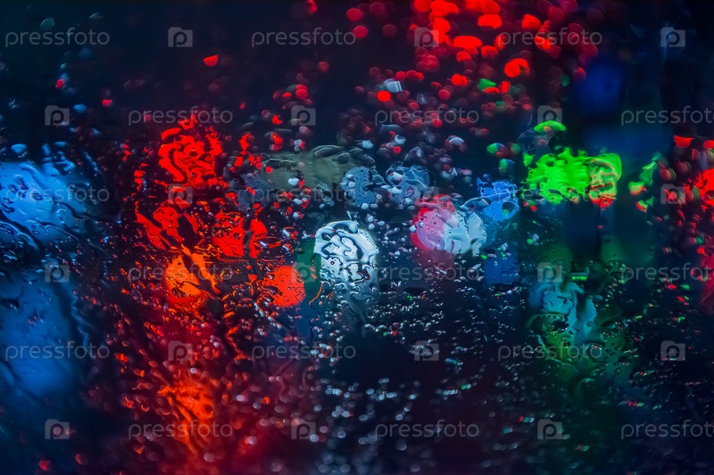 Вода падает на стекло автомобиля ночью во время дождя