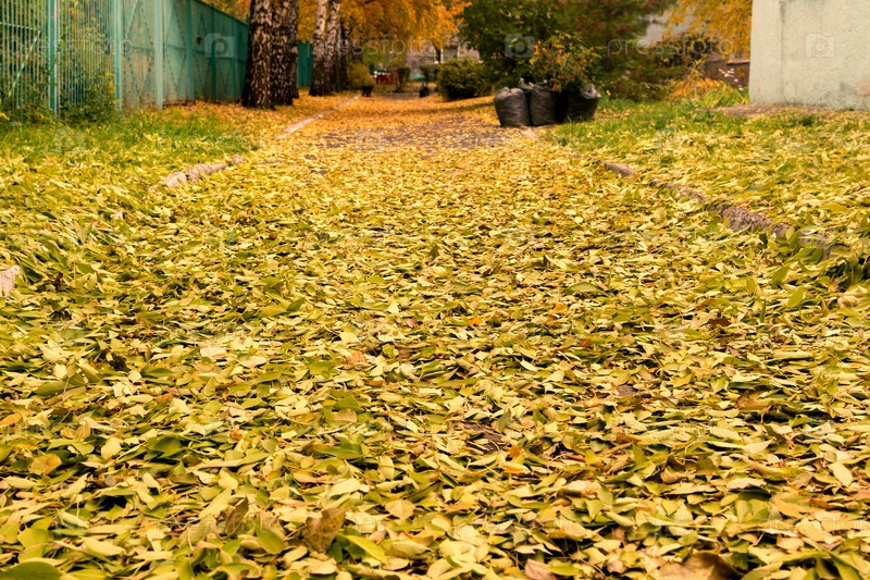 Дорога завалена опавшими осенними листьями