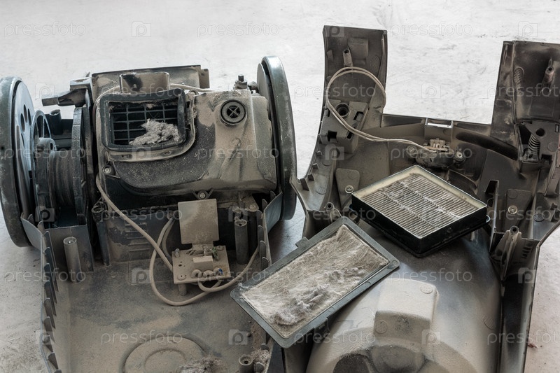 Пыльный и грязный разобранный пылесос
