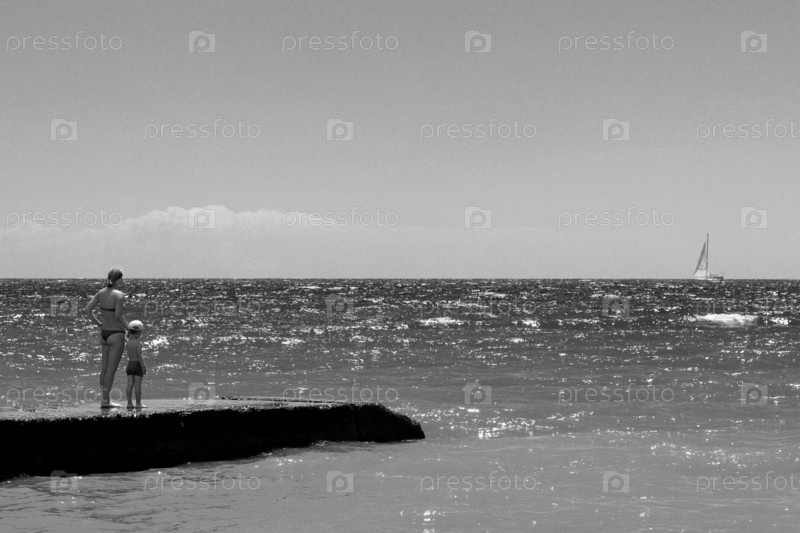 Женщина и ребенок на волнорезе