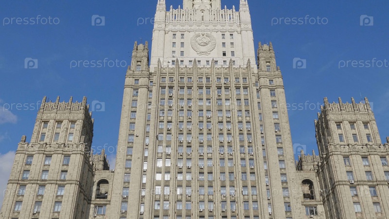 МОСКВА, РОССИЯ - 27 июля 2019 года: Главное здание Министерства иностранных дел - один из семи знаменитых небоскребов, построенных в сталинском стиле, 27 июля 2019 года в Москве, Россия