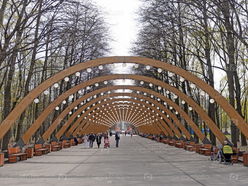 Парк Сокольники, деревянная арка солнечного осеннего дня