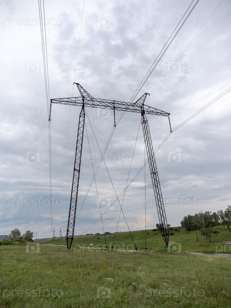 Бетонный электрический столб с проводами на фоне неба