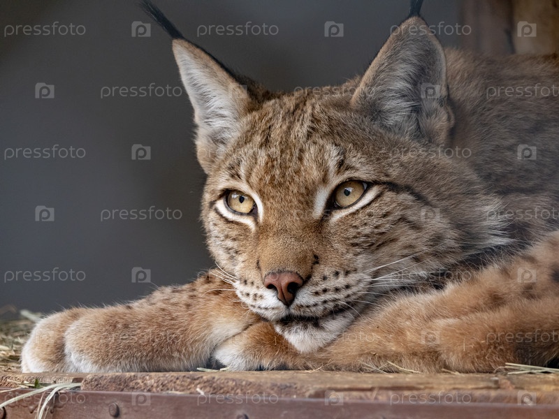 Рысь смотрит хищными глазами из укрытия