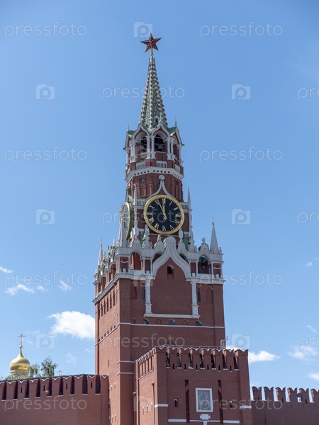 Спасская башня Московского Кремля на Красной площади зимой Москва Россия