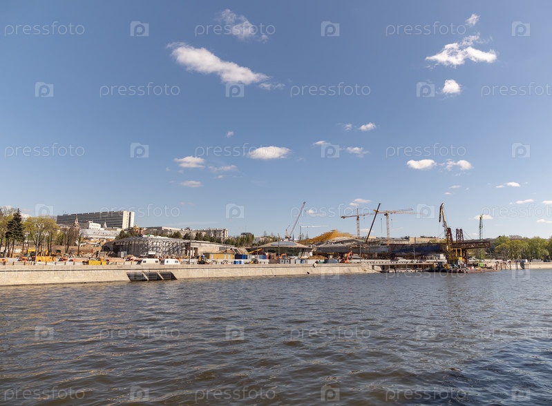 МОСКВА - 25 июля: Фрагмент плавучего моста в парке "Зарядье" в Москве на фоне неба 25 июля 2018 года в Москве, Россия
