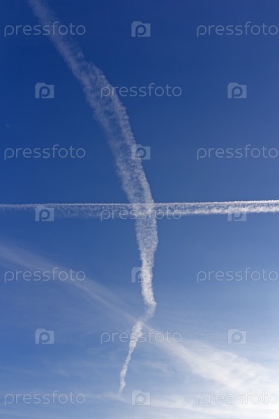 След самолета в небе