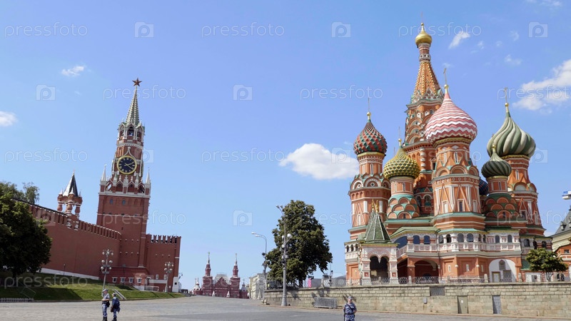 Москва Красная площадь. Собор Василия Блаженного и Спасская башня